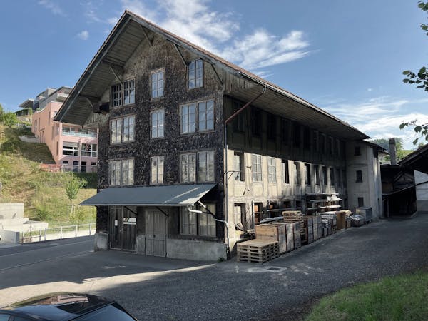 Auch im Aussenraum wird nach einem integralen Ansatz gesucht. Wie die Bestandesbauten auch, kommt der Grünraum teilweise bis an die Fassade, was dem Gebäude halt gibt an seinem Ort. Der Ankunfts- und Begegnungplatz liegt im Innenhof, wo unmittelbar ums Gebäude mittels Bruchsteinplatten und Kies Analogien zum Bestand gesucht werden.
