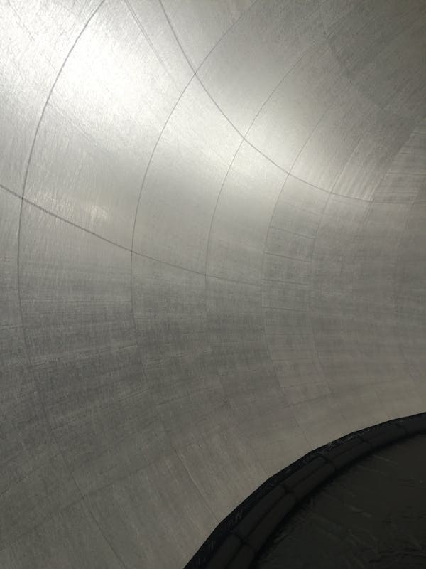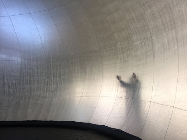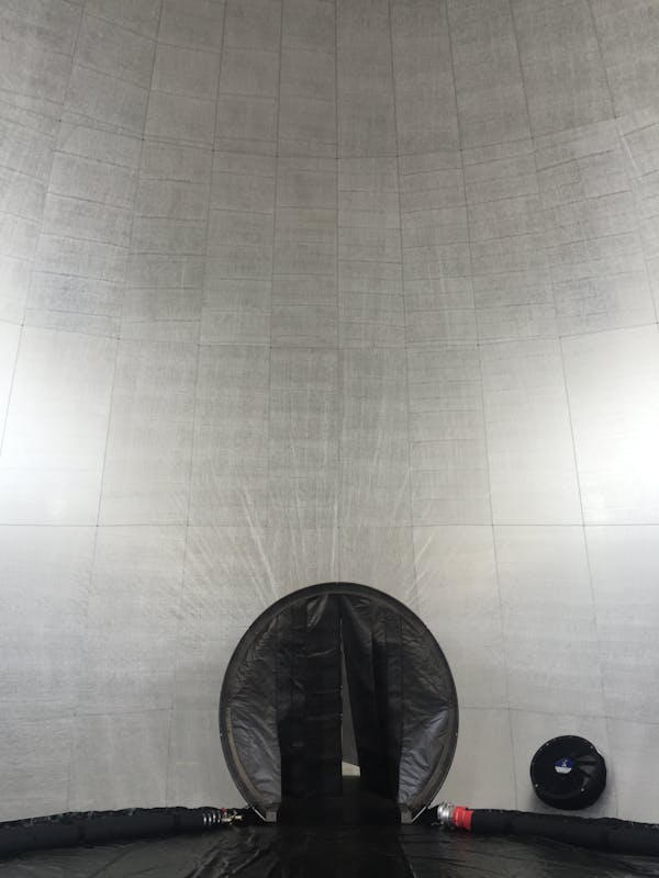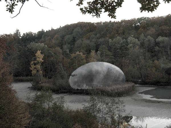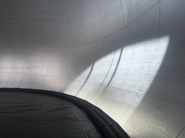 Die Hülle besteht aus einem reissfesten und brandschutzgeprüften Material aus der Raumfahrttechnologie und wird mittels Unterdruck auf seine vordefinierte Form und Grösse aufgeblasen. Somit entsteht eine transluszente «Blase» welche über 50 Personen aufnehmen kann. Eine klare durchsichtige Folie, welche in der Kuppel liegt, bringt den Sternenhimmel in den Raum und bildet einen atmosphärischen Übergang von Innen und Aussen. Das architektonische Kunstprojekt passt sich stets seiner Umgebung an und vermittelt zwischen physischer Hülle und sphärischen Klangwelten.