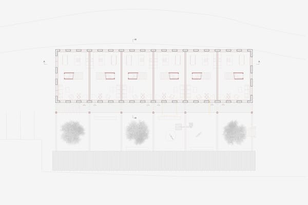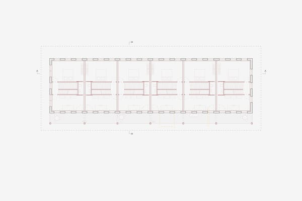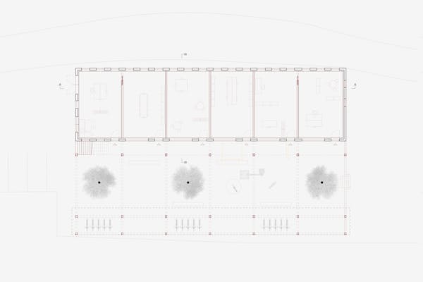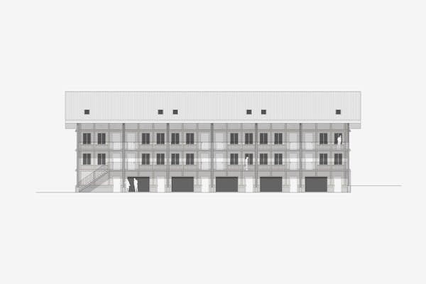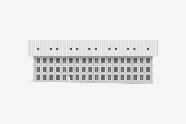 Das Transformationsprojekt schlägt vor den Bestand bis auf die Erdgeschossmauer, welche mit einem Sandsteinsockel nur wenig Deformation in der Fassade aufweisen, abzubrechen und neu aufzubauen. Das Rastermass und die Fassadengestaltung folgen dem Bestand, was nicht nur als typologisch wichtige Reminiszenz verstanden wird, sondern auch dem Abbruch des bauinventarisierten Gebäude Rechnung trägt. Über eine neue Laubengangschicht auf der Südseite können 6 Wohneinheiten erschlossen werden, welche über 2 Vollgeschosse mit Dachgalerie organisiert sind. Die Nebengebäude der früheren Industrienutzung werden zurückgebaut, wo sich ein neuer gemeinsamer Aussenplatz zum verweilen aufspannt. Das Erdgeschoss dient als Arbeits- und Atelierfläche wo grosse Öffnungen zum Aussenraum die Nutzung sichtbar macht.