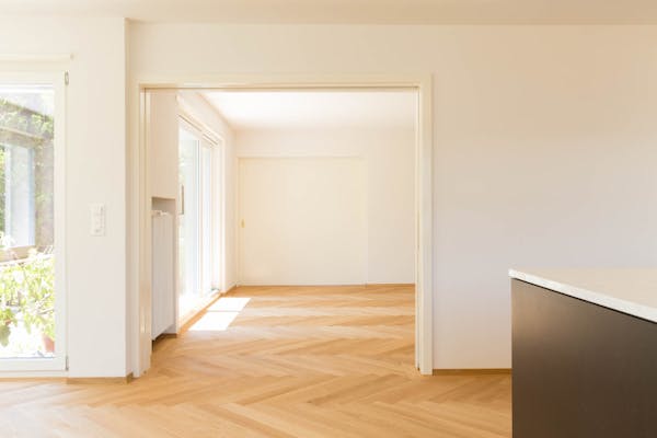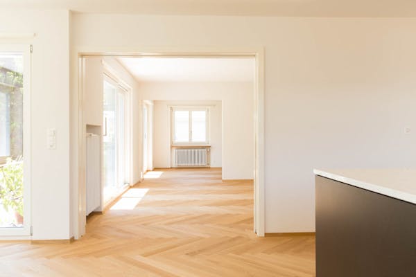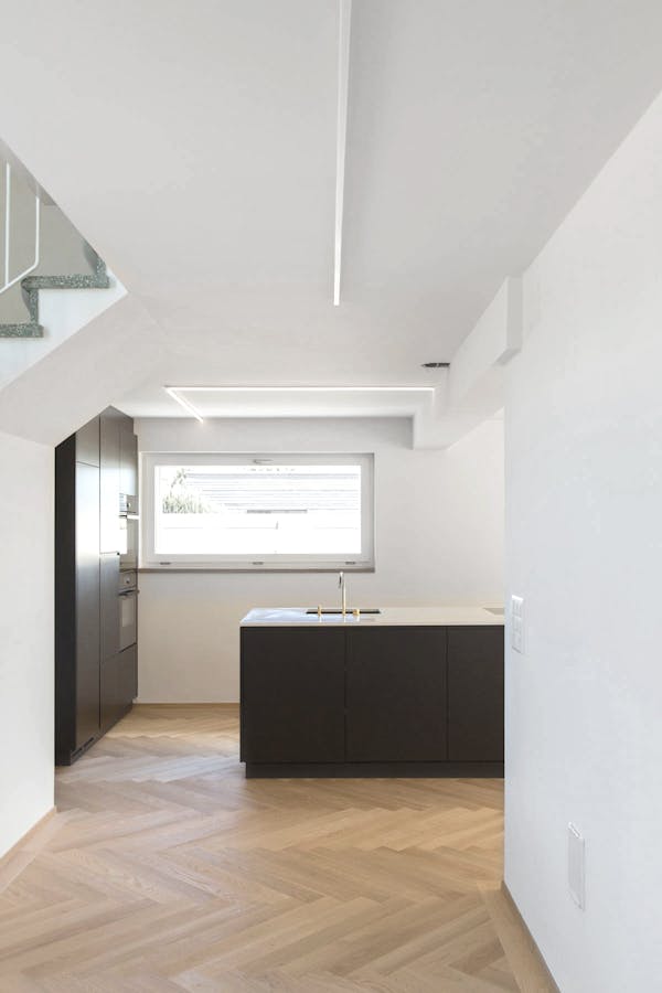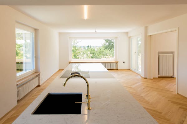 Das Wohnhaus aus den 50er Jahren liegt in einer ruhigen Wohnsiedlung nahe dem Oberwald in Biberist. Bei der Erarbeitung des Sanierungskonzepts stand die Erhaltung des ursprünglichen Charakters im Zentrum. Gleichzeitig bestand der Anspruch der Grossfamilie, die Räume multifunktionaler zu nützen und die Interaktion zwischen den einzelnen Zonen zu erhöhen. In einem ersten Schritt wurde die Fassade energetisch gesamtsaniert. In einem zweiten Schritt wurde der Innenraum ausgebaut und umstrukturiert. Aus vier abgetrennten Räumen im Erdgeschoss wurde durch eine Vereinheitlichung der Böden sowie durch grössere Öffnungen und Schiebtüren eine attraktive Wohn- / Kochlandschaft geschaffen. Diese kleinen aber effektvollen Interventionen hauchten dem Wohnhaus neues Leben ein.